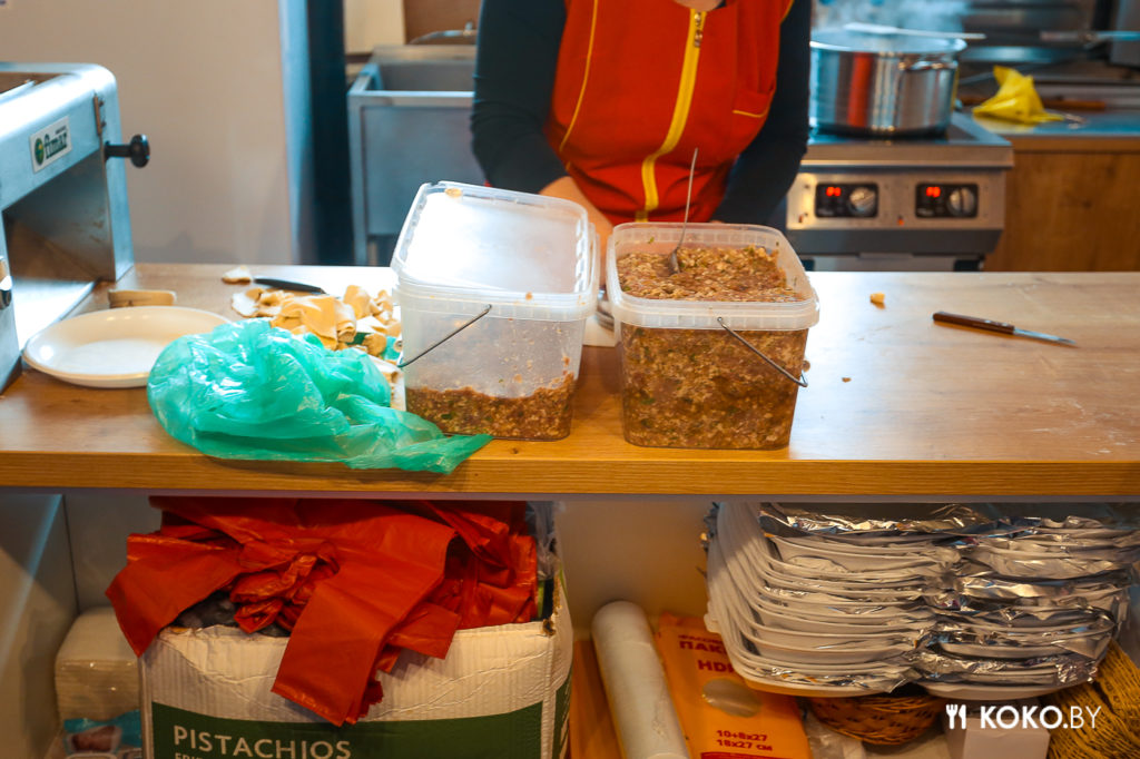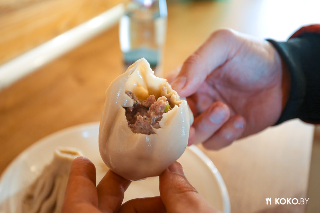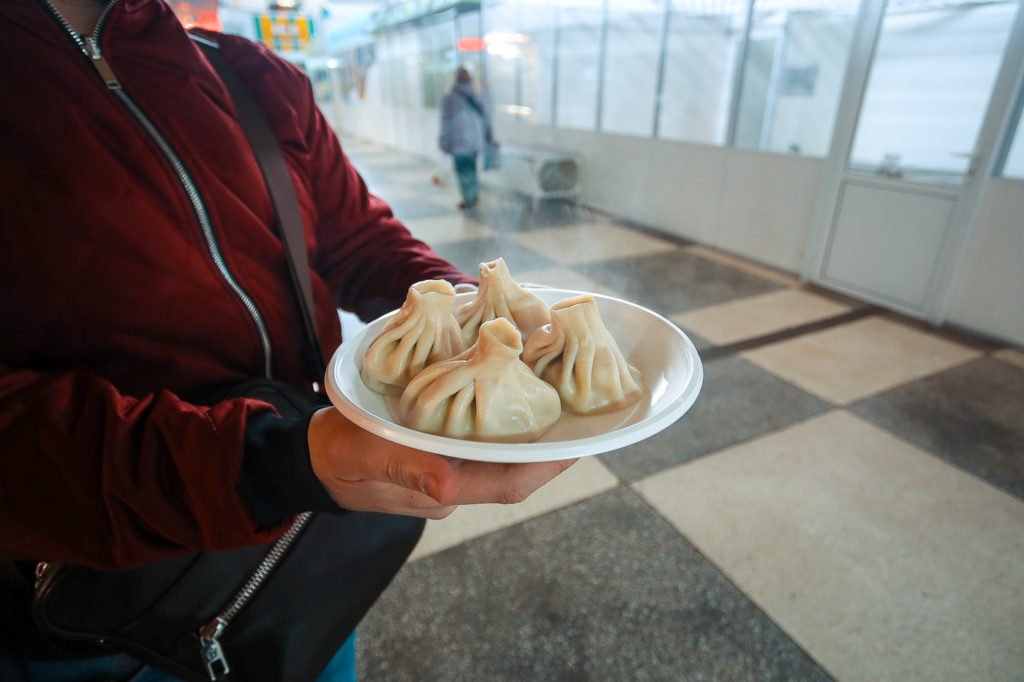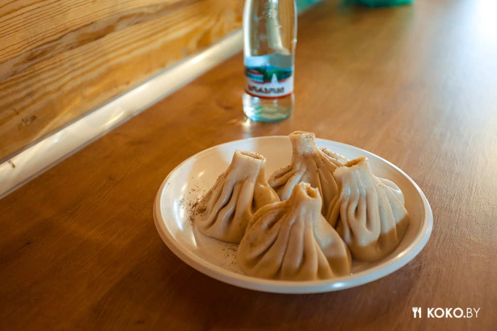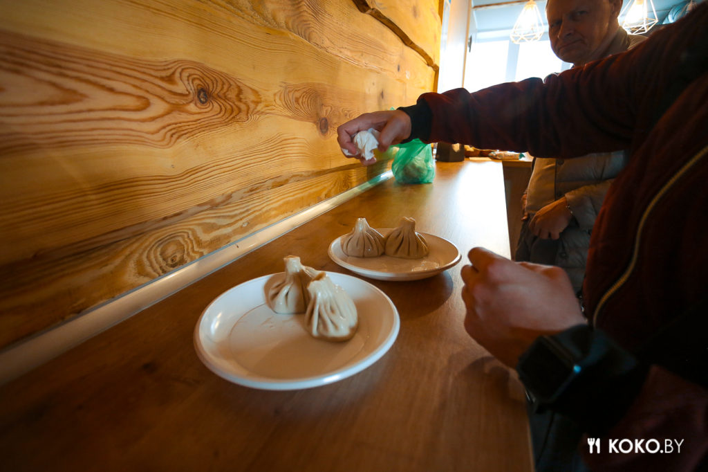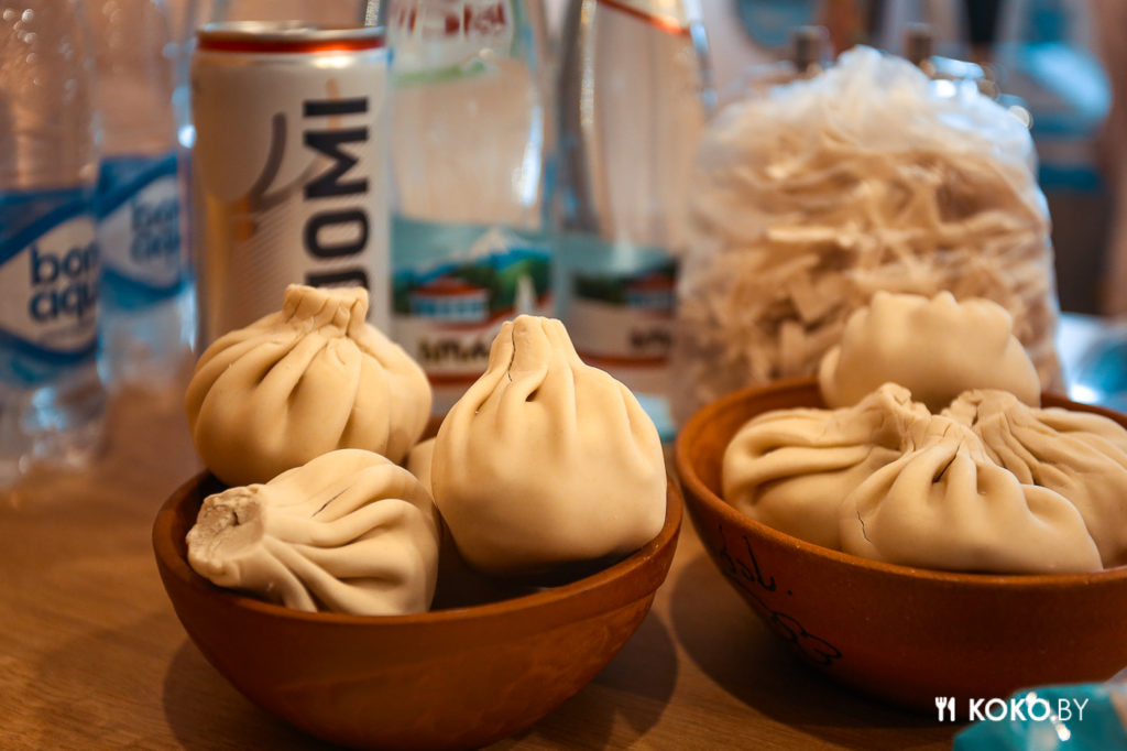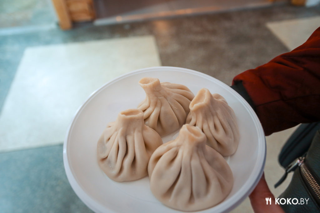 Хинкали можно съесть на месте, правда стоя за столом или заказать навынос отварные или замороженные. Последние уже дома закидываем в кипяток, пару раз размешиваем, чтобы не прилипли, и варим минут 5 — 7 на большом огне. Тесто тонкое, эластичное, мяса много, внутри столовая ложка мясного сока. Зелень и традиционные грузинские специи в мясе придают колорит. Хинкали с говядиной и свининой — сочный сок на 9 кокобаев! Точно не хуже, чем в ресторане «Тифлисъ», и намного лучше, чем в других грузинских кафе!