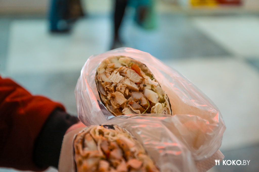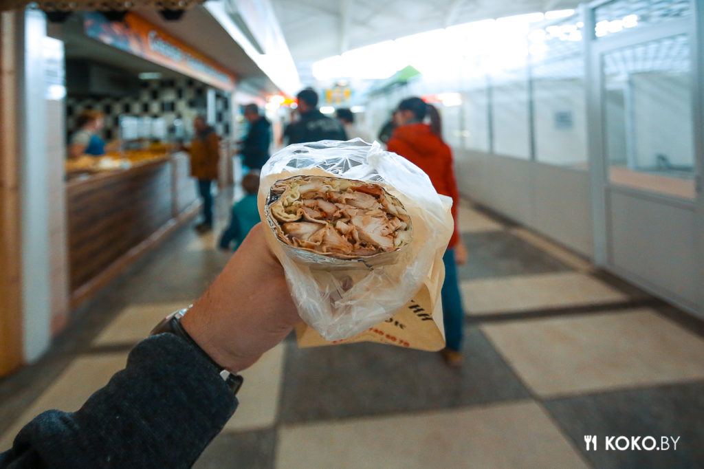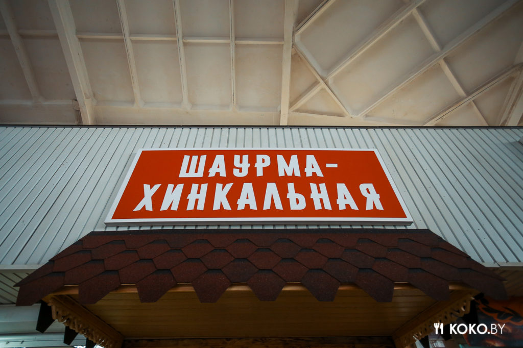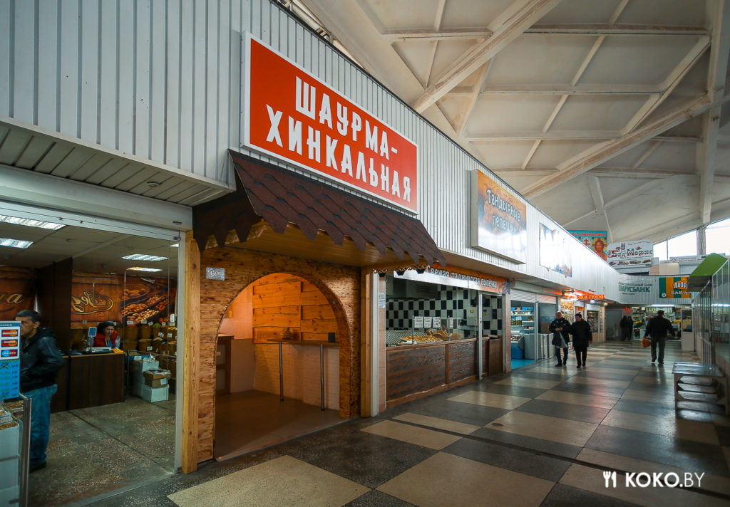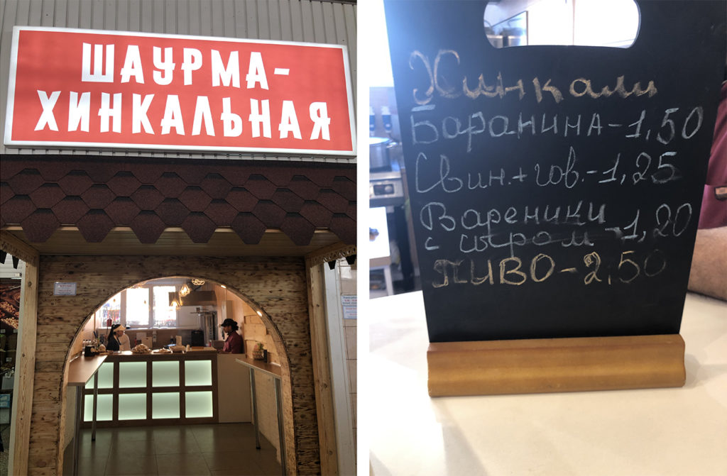 Как найти: заходим через центральный вход, поворачиваем налево и идём по стенке вдоль точек со свежей выпечкой, иранскими продуктами, блинами и собачьим кормом до тех пор, пока не увидим небольшое помещение, отделанное вагонкой. Поднимаем голову, если написано «Шаурма-хинкальная», значит у вас есть задатки охотника, дичь вы выследили, осталось её загнать!