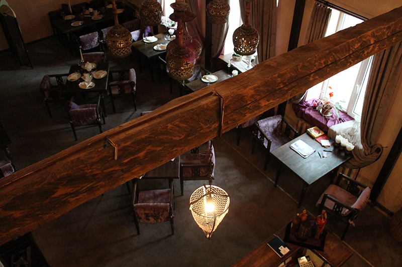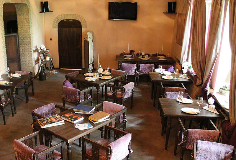 Осмотрев двор, мы зашли внутрь ресторана. В зале царит домашняя атмосфера, есть даже настоящий камин. По лестнице можно подняться на второй этаж.