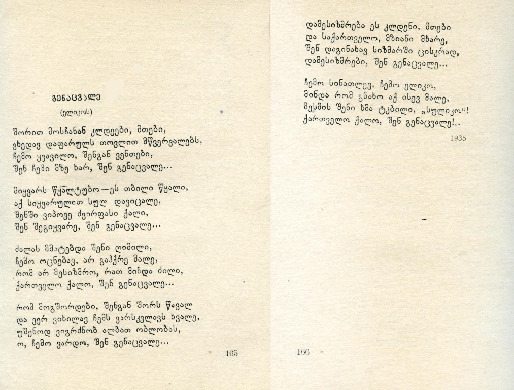 Перевод стихотворения «Генацвале» на грузинский