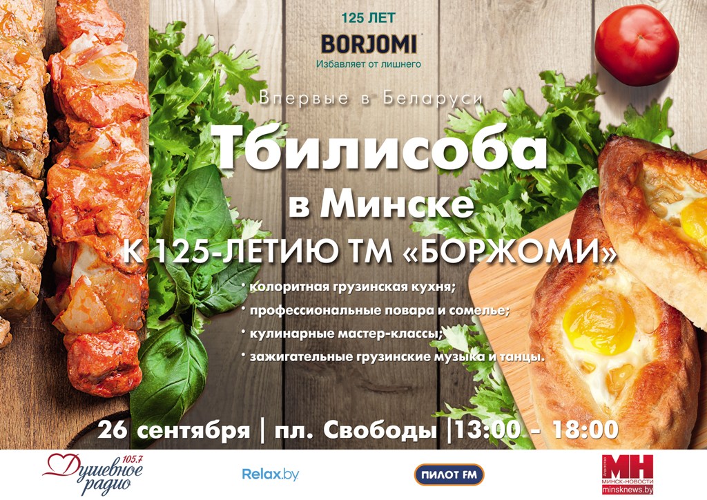 Свой 125-й день рождения «Боржоми» приглашает минчан и гостей белорусской столицы отпраздновать вместе: 26 сентября на площади Свободы (возле городской ратуши) можно будет попробовать настоящие грузинские блюда и вино, потанцевать под грузинские мотивы и от души повеселиться на грузинский лад.