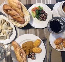 Сюда я хожу довольно часто, потому что живу рядом и самому себе готовить лень. Последний раз был пару дней назад с сестрой и друзьями. На обед всегда беру харчо и 2-3 хинкали. Вечером – хачапури, аджапсандали и сациви. В обед обычно трачу около 8 рублей, на ужин с бокалом вина трачу рублей 15.