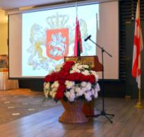 Позвольте выразить благодарность за участие в сегодняшнем праздничном приеме в честь Дня Независимости Грузии. Грузия вновь обрела независимость 96 лет тому назад; в силу известных причин, Грузинская демократическая республика просуществовала недолго. Однако в 1991 году Парламент Грузии объявил о восстановлении независимости, что было поддержано и признано всем мировым сообществом. После обретения независимости политика правительства Грузии направлена на демократию, добрососедство, поддержку мира и стабильности.