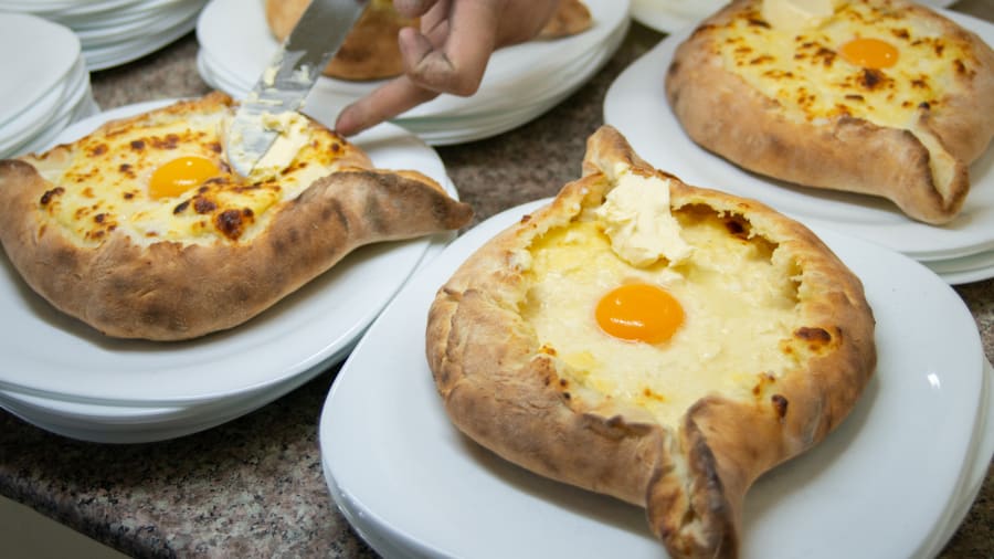 Отдельно стоит упомянуть ачарули – хачапури по-аджарски, названный в честь черноморского региона Грузии, откуда он родом. Это лодочка из дрожжевого теста с начинкой из плавленного сыра, яичного желтка и кусочка масла. Ачарули едят руками, отрывая кусочки теста и окуная их в начинку, невзирая на риск для артерий.