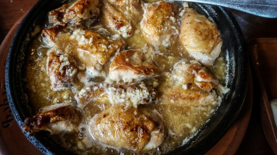 Приготовленный в керамической посуде, с молоком и количеством чеснока, достаточным для отражения батальона вампиров, шкмерули – не для слабонервных. К месту придется жареный картофель и хлеб, чтобы вымакивать соус.