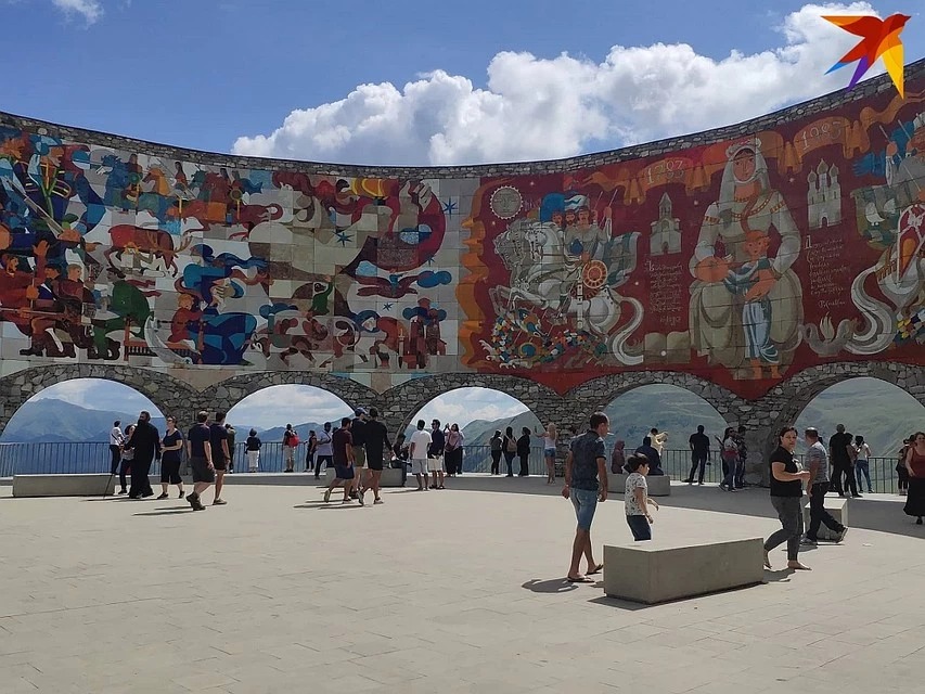 Еще одна известная достопримечательность, которую мы не смогли пропустить, – красочная мозаичная Арка Дружбы народов. Здесь находится смотровая площадка, откуда открываются сказочные виды. Когда смотришь на горы и парящих в небе парапланеристов, перехватывает дух.