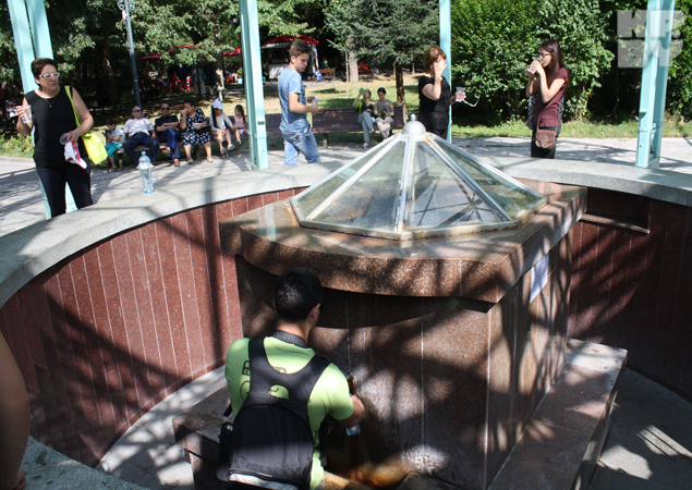 Кстати, воду, бьющую прямо из скважин, можно попробовать. Она действительно слабо газированная, и на вкус та, которую мы пьем в бутылках, только теплая, и поэтому специфическая на вкус.