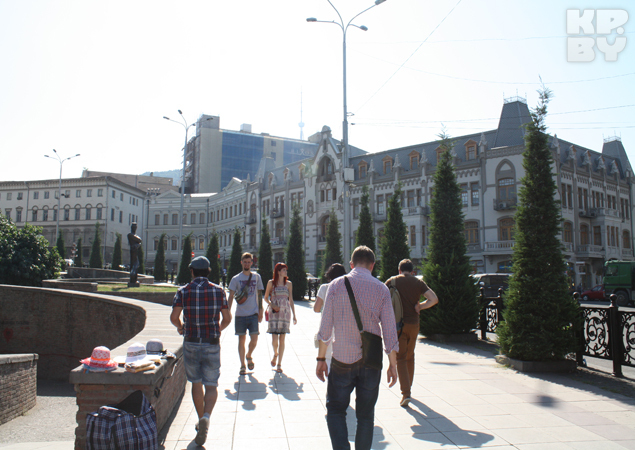 Тбилиси – мегаполис, и жизнь там кипит с самого утра, так же, как и в Минске. На дорогах много машин, в том числе и с «правым рулем», на улице много людей, но воздух не загазованный и его много — свежего, хоть ложками ешь.