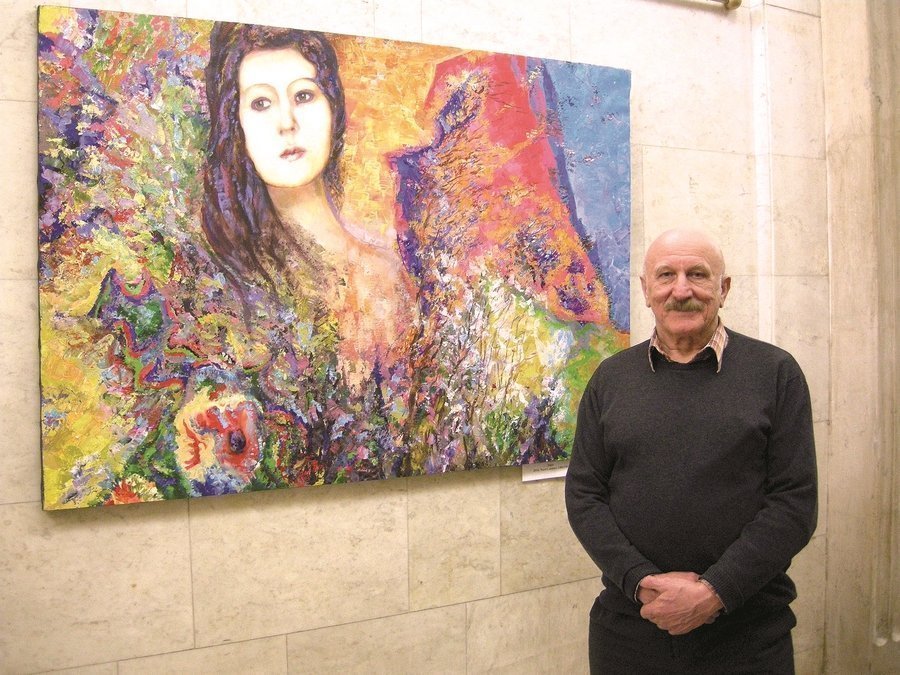 Леанід Данэлія побач з ягонай карцінай “Лара. Партрэт жонкі”