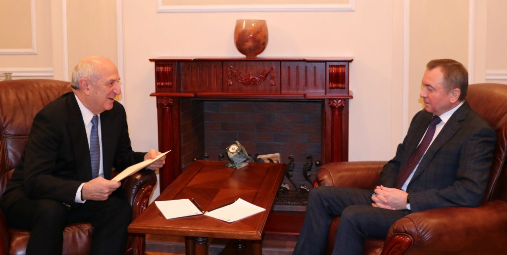 12 января 2018 г. состоялась встреча Министра иностранных дел Республики Беларусь Владимира Макея с Чрезвычайным и Полномочным Послом Грузии в Республике Беларусь Валерием Кварацхелия по случаю вручения им копий верительных грамот.