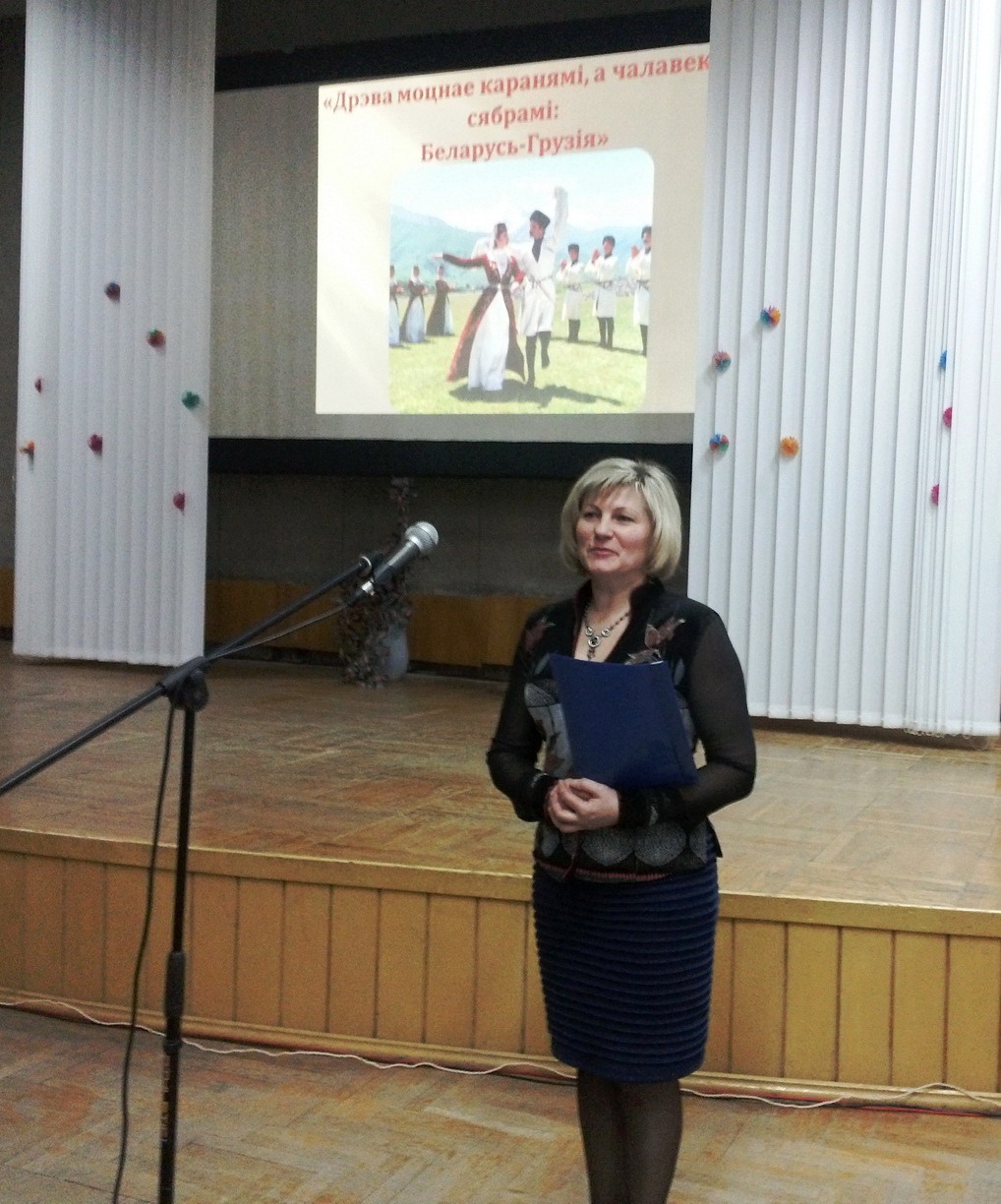 – Я всегда очень хорошо относилась к Грузии, поэтому давно хотелось организовать что-то подобное, – рассказала ведущая вечера Зинаида Александровна Лабун. – Тем более, что в этом году отмечается 70-летие победы в Великой Отечественной войне – важная для обоих народов дата. К тому же, как выяснилось уже в процессе подготовки, в апреле с официальным визитом Грузию планирует посетить Президент Беларуси. Так что все как-то совпало…