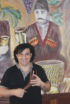 — Калі ў дзяцінстве да нас прыходзілі госці, за стол садзілася не менш за 20—25 чалавек! Клікалі суседзяў, радню — татаву і маміну… Абавязкова прыходзілі жанчыны, якія дапамагалі гаспадыні прыгатаваць стол. Яны пяклі хачапуры, лабіяні (гэта накшталт хачапуры, толькі ў цеста замест сулугуні дабаўляецца фасоля), гатавалі чахахбілі з курыцы, рабілі мамалыгу з кукурузнай мукі і сулугуні… Ну і, вядома, на стале заўсёды прысутнічалі памідоры, агуркі — свежыя і салёныя, вельмі папулярнай была кіслая чырвоная капуста, такая хрусткая!.. Але ў грузінскім застоллі асноўнае не ежа, а адносіны паміж людзьмі. Госці размаўляюць, гавораць тосты. За сталом ствараецца сяброўская атмасфера, чалавек зараджаецца пазітыўнай энергіяй. Таму так часта наладжваюцца застоллі, дзе ёсць і смачныя вострыя стравы, і цёплыя размовы, і віно, і рог. Віно з рога госцю трэба выпіць абавязкова. А калі той піць не хоча, то павінен сказаць, што ён вельмі-вельмі хворы.