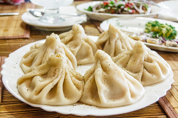 Крупные грузинские пельмени с фаршем из говядины, баранины, лука, кинзы и чеснока. Многие домашние повара Грузии до сих пор не используют мясорубки или готовый фарш, нарезая мясо по старинке двумя ножами. Поедание хинкали — целое искусство. Пирамидка-пельмень берется за вершину-хвостик, переворачивается, и надкусывается с краю. Причем укусить нужно так, чтобы сок, который пустило мясо во время приготовления, не пролился. И не вздумайте насадить хинкали на вилку — хинкали едят руками, и только руками. Причем непременно горячим и щедро посыпанные крупномолотым черным перцем.
